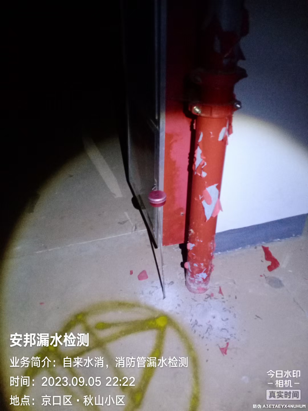 經(jīng)排查發(fā)現(xiàn)消防管道漏水2處。